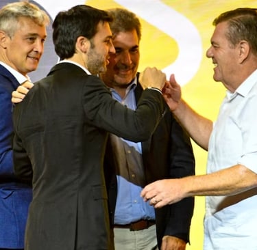 Antes de desalojar el predio de Parque Norte, hubo una convocatoria a realizar una foto grupal con todos los dirigentes del interior. Guillermo Montenegro, intendente de Mar del Plata en uso de licencia y actual senador provincial, miraba a lo lejos junto a Alejandro Rabinovich, presidente del bloque de diputados en la legislatura bonaerense. Minutos antes, Montenegro, cercano a Ritondo y al actual ministro de Interior, Diego Santilli, se subió al escenario principal para sacarse una foto grupal con Macri.